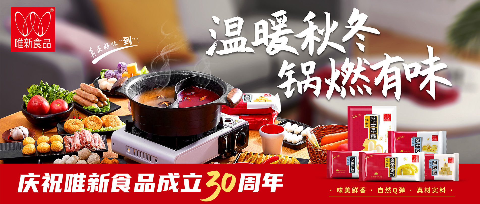 選擇蛋白質(zhì)含量及新鮮度高的豬后腿肉為原料,模擬手工捶打的打漿工藝,再經(jīng)煮制、冷卻、速凍工藝才可生產(chǎn)出自然脆彈的唯新貢丸,是居家佐餐、火鍋的美味食品。近年來(lái)我們還研發(fā)生產(chǎn)了香腸、蝦滑、魚(yú)丸、牛肉丸等大眾喜愛(ài)的家庭火鍋料速凍食品。
