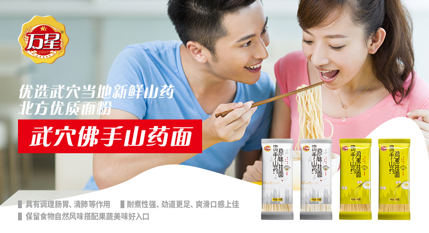 湖北萬星面業(yè)股份有限公司于2006年創(chuàng)建于湖北省武穴市武穴工業(yè)園內(nèi),注冊資金2000萬元,占地面積50余畝,各類生產(chǎn)技術(shù)工人300余人,是湖北面條行業(yè)準(zhǔn)上市公司,總部位于黃岡市武穴,現(xiàn)萬星商標(biāo)授權(quán)浙江唯新實業(yè)運營。萬星面業(yè)是以優(yōu)質(zhì)面粉和武穴原生態(tài)佛手山藥為主要原料,生產(chǎn)普通掛面、花色掛面、佛手山藥面、傳統(tǒng)油面等精品雜糧面的企業(yè)?,F(xiàn)年生產(chǎn)能力達40000噸,年銷售額過億元。